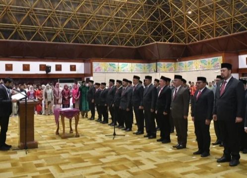 AcehBANDA ACEH — Gubernur Aceh, Muzakir Manaf, melantik dan mengambil sumpah 25 pejabat pimpinan tinggi pratama (eselon II) di lingkungan Pemerintah Aceh, dalam prosesi di Anjong Mon Mata, Meuligoe Gubernur Aceh, Jumat (27/2/2026) malam. Pelantikan tersebut dilakukan untuk mengisi jabatan kosong sekaligus penyegaran organisasi guna memperkuat kinerja pemerintahan. Pelantikan yang berlangsung usai salat tarawih itu […]