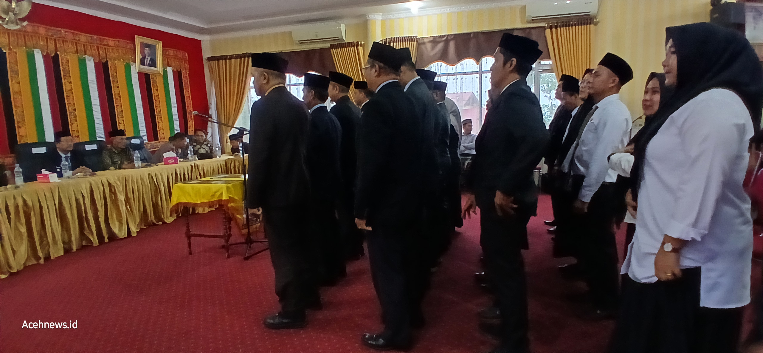 Singkil – Pemerintah Kabupaten (Pemkab) Aceh Singkil melantik sejumlah pejabat struktural dari eselon II, III, hingga IV pada Jumat (24/10/2025). Pelantikan yang berlangsung di Aula Sekretariat Daerah Kabupaten (Setdakab) Aceh Singkil itu dipimpin langsung oleh Bupati Aceh Singkil, Safriadi Oyon, dan disaksikan oleh Wakil Bupati Hamzah Sulaiman, Pj Sekda, unsur Forkopimda, Kodim 0109 Aceh Singkil, Majelis Permusyawaratan Ulama (MPU), serta tokoh masyarakat setempat.