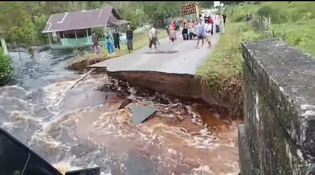 Aceh Singkil – Jalan Lintas Provinsi Singkil–Rimo di Desa Gosong Telaga Barat, Kecamatan Singkil Utara, Kabupaten Aceh Singkil, putus total akibat banjir yang menerjang kawasan tersebut pada Kamis (27/11/2025). Satu unit mobil jenis Kijang terperosok ke badan jalan yang amblas. Hingga kini belum ada laporan korban jiwa.