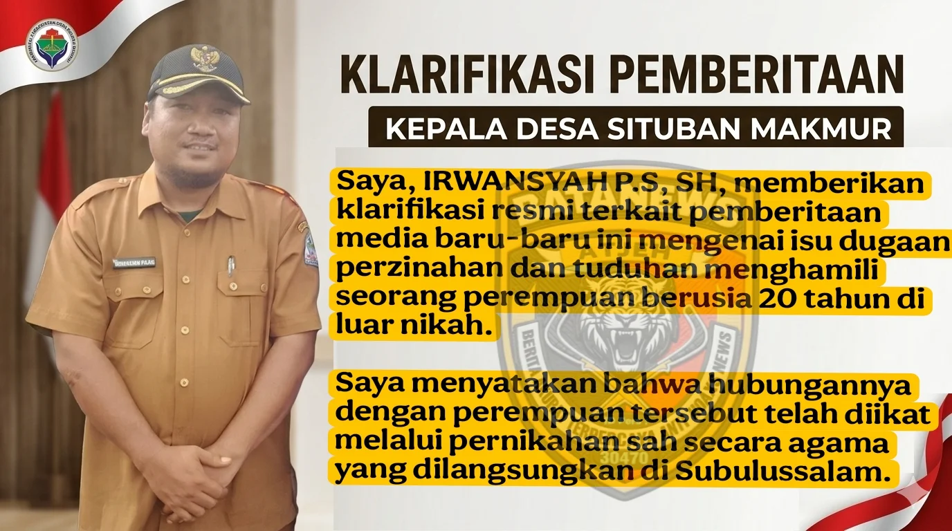 ACEH SINGKIL – Kepala Desa Situban Makmur, Kecamatan Danau Paris, Irwansyah Putra Sambo, akhirnya angkat bicara terkait isu yang menyebut dirinya menghamili seorang gadis berusia 20 tahun di luar nikah.