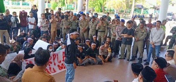 Aceh Singkil — Massa yang mengatasnamakan Solidaritas Mahasiswa dan Pemuda Aceh Singkil menggelar unjuk rasa di kantor DPRK Aceh Singkil, Kampung Baru, Kecamatan Singkil Utara, Senin (9/2/2026).