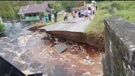 Jembatan di Desa Suka Makmur Amblas, Akses Transportasi Terputus